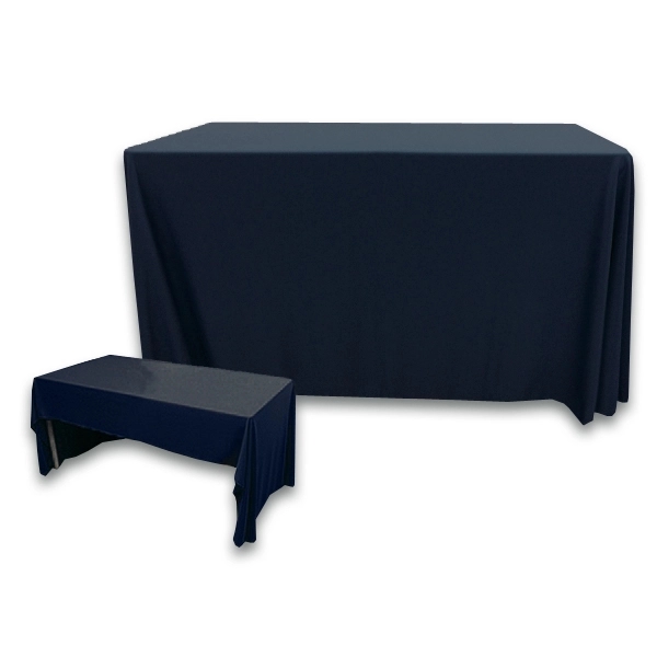 Make your tabletop display more presentable with this 4 ft. x 24 in. 3-sided table cover! Offered in a wide variety of colors, each table cover is made from our unique Premium Polyknit™ fabric that drapes beautifully and is wrinkle and stain resistant by design, plus it's superior to poplin and twill. It's designed to fit a 48 inch wide x 24 inch deep table and features an open back for quick and easy use. The design is floor length on 3 sides with an approximately 6 inch drape on the back side. All corners are rounded, meaning they will not gather and lay on the floor. The cloth is EasyCare, machine washable and dryer safe. This product is sold blank.
