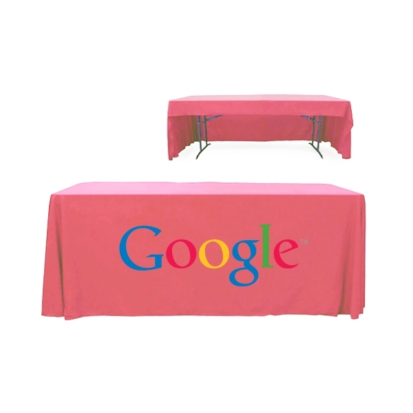 Turn any normal tabletop into an eye-catching space for your brand with this 6 foot, 3-sided table cover! Fitting a 72" wide x 30" deep table, this cover is designed with an open back. It's floor length on 3 sides and the back side features an approx. drape of 6 inches. Each cover is made from our unique Premium Polyknit™ fabric that drapes beautifully and is wrinkle and stain-release by design. The cloth is EasyCare and machine washable. Customize each cover with a brand name or logo using full color printing. Customize with Formula Guide Solid Coated Pantones (PMS C), Formula Guide Solid Uncoated Pantones (PMS U), or with your own color(s) to print as is. An excellent choice for tradeshows, conventions, job fairs and many other promotional events!